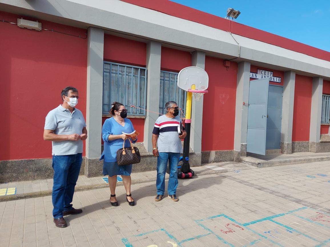 El edil del área, Juan Francisco Artiles, aprovechó la firma del acta de replanteo previa al comienzo de la obra, para visitar el centro junto a la arquitecta municipal, María Jesús Santana, el coordinador del Colectivo de Escuelas Rurales (CER), Salvador Ramírez del Pino, el técnico responsable del proyecto y la dirección de obra, Orencio Rodríguez Camacho, y el representante de la empresa adjudicataria.