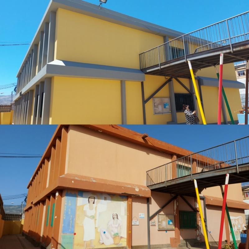 El edil del área, Juan Francisco Artiles, recuerda que el proyecto realizado en este centro incluyó el arreglo y el tratamiento cromático de la fachada principal, que presentaba riesgo de caída de cascotes, así como el arreglo e impermeabilización de varias zonas de la cubierta del edificio, entre otras tareas, con un coste de 41.839,73 euros.