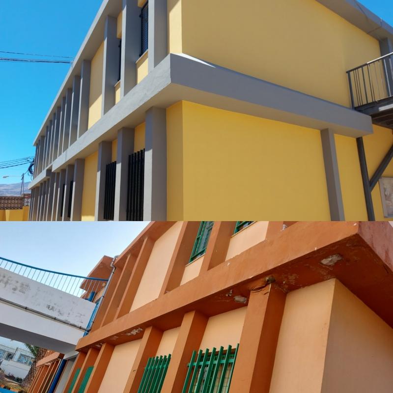 El edil del área, Juan Francisco Artiles, recuerda que el proyecto realizado en este centro incluyó el arreglo y el tratamiento cromático de la fachada principal, que presentaba riesgo de caída de cascotes, así como el arreglo e impermeabilización de varias zonas de la cubierta del edificio, entre otras tareas, con un coste de 41.839,73 euros.