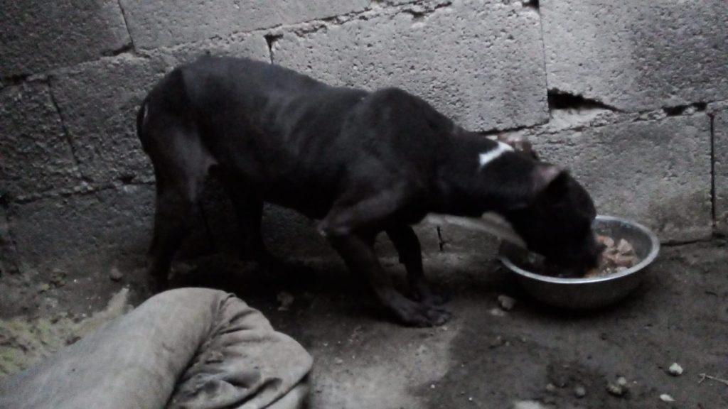 Y hablamos de que “tuvieron” porque hasta en tres ocasiones, la mencionada veterinaria y la policía local acudieron al zulo donde el animal se encontraba “sin ver indicios de maltrato”. El animal se encontraba encadenado en un espacio minúsculo, rodeado de sus propias heces, sin agua ni comida, con un colchón carcomido y la única protección de una puerta tirada que le daba sombra (acompañamos videos e imágenes). No tenía ni chip, ni vacunas, ni seguro al ser un perro PPP, ni sus poseedores tenían la licencia pertinente.