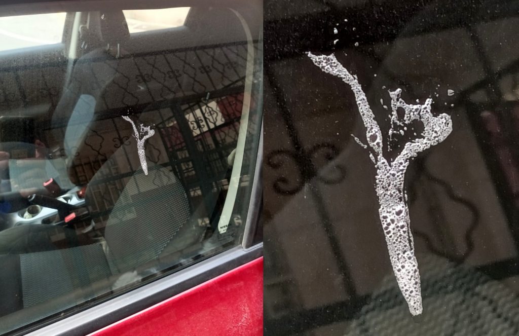 Sí, ese enunciado es el que algún individuo o individua está, día sí y día también, haciendo en la ventanilla de un coche en la calle Pedro de la Ascensión en San Gregorio (Telde), según denuncian los vecinos a través de ONDAGUANCHE. «Desconocemos quien puede ser, pero como lo cojamos infraganti, ese día limpiará todo el coche con su asquerosa lengua. Hay que ser cerdo o cerda para hacer lo que hace… seguro que no le haría ninguna gracia que se lo hicieran a su coche, o sí, ¡quién sabe!», afirman indignados.