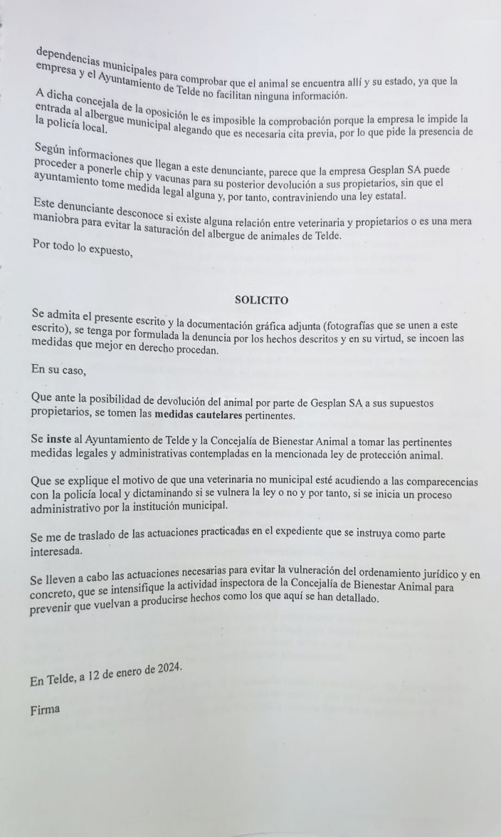 DENUNCIAN POR MALTRATO ANIMAL Y NEGLIGENCIA A GESPLAN Y AL AYUNTAMIENTO DE TELDE