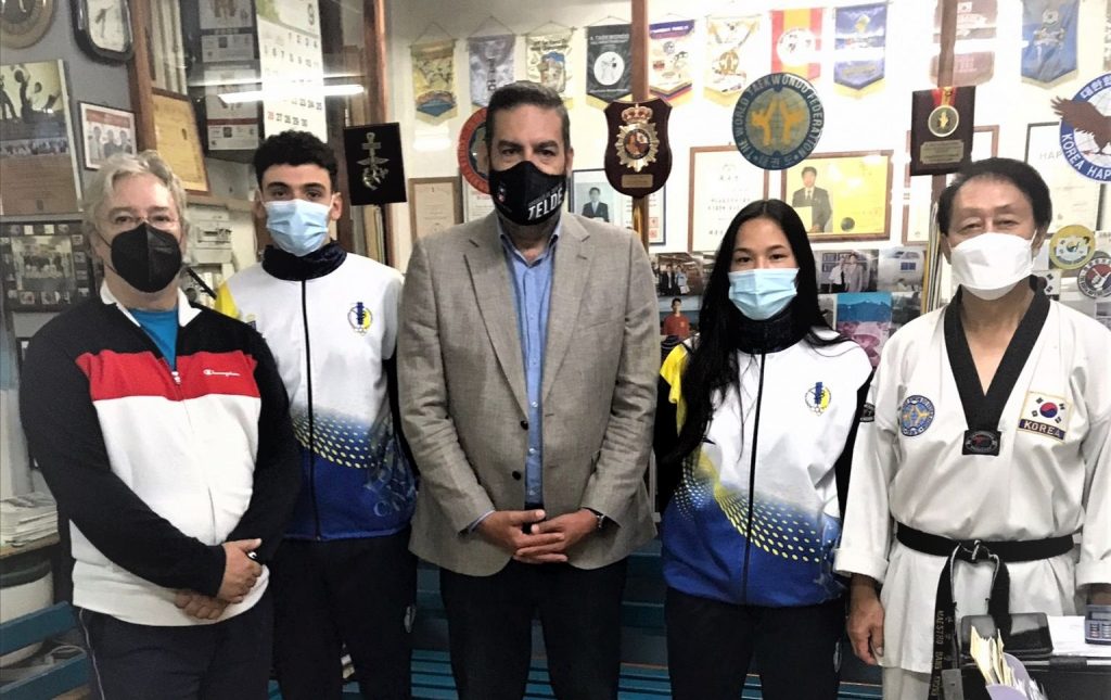 El concejal de Actividad Física y Deportes del Ayuntamiento de Telde, Diego Ojeda, rendía visita al Gimnasio Han Kuk del maestro Bang Kyung Won para dar las felicidades y ánimos a sus taekwondistas, Patricia Hua Medina Moreno y Marcos García Sánchez, que representarán a Canarias en el Campeonato de España de Taekwondo Junior, los días 1 y 2 de octubre, en el Palacio de los Deportes de Cartagena, Murcia.