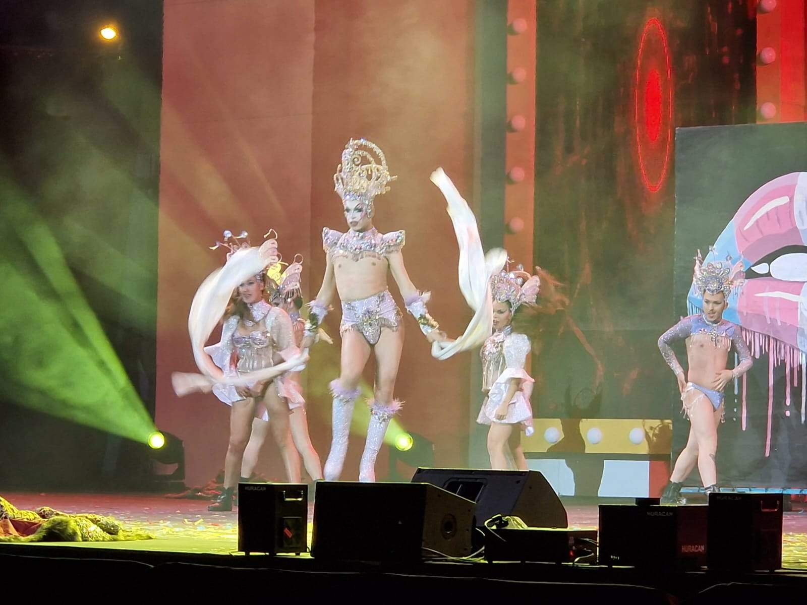 Asimismo, uno de los momentos claves de la noche, conformada al 100% por artistas canarios, tuvo lugar con la actuación sobre el escenario de la cantante internacional Ptazeta. Con su música y sus letras puso en pie a un anfiteatro emocionado que no dejó de disfrutar en ningún momento de este acontecimiento carnavalero, que tiene como director creativo a Kilian Betancor.
