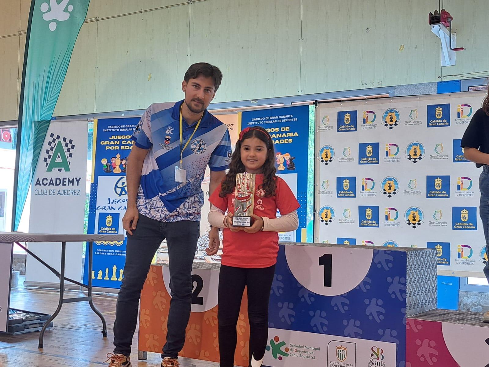Destacando la actuación de Chloe Nasheri Armillas en la categoría sub-8 Femenina, obteniendo un segundo puesto (1 plata), perdiendo solo una partida con la 1ªclasificada, y acabando con 5 puntos de 6 posibles para así mostrar durante todo el torneo un muy buen nivel ajedrecístico.