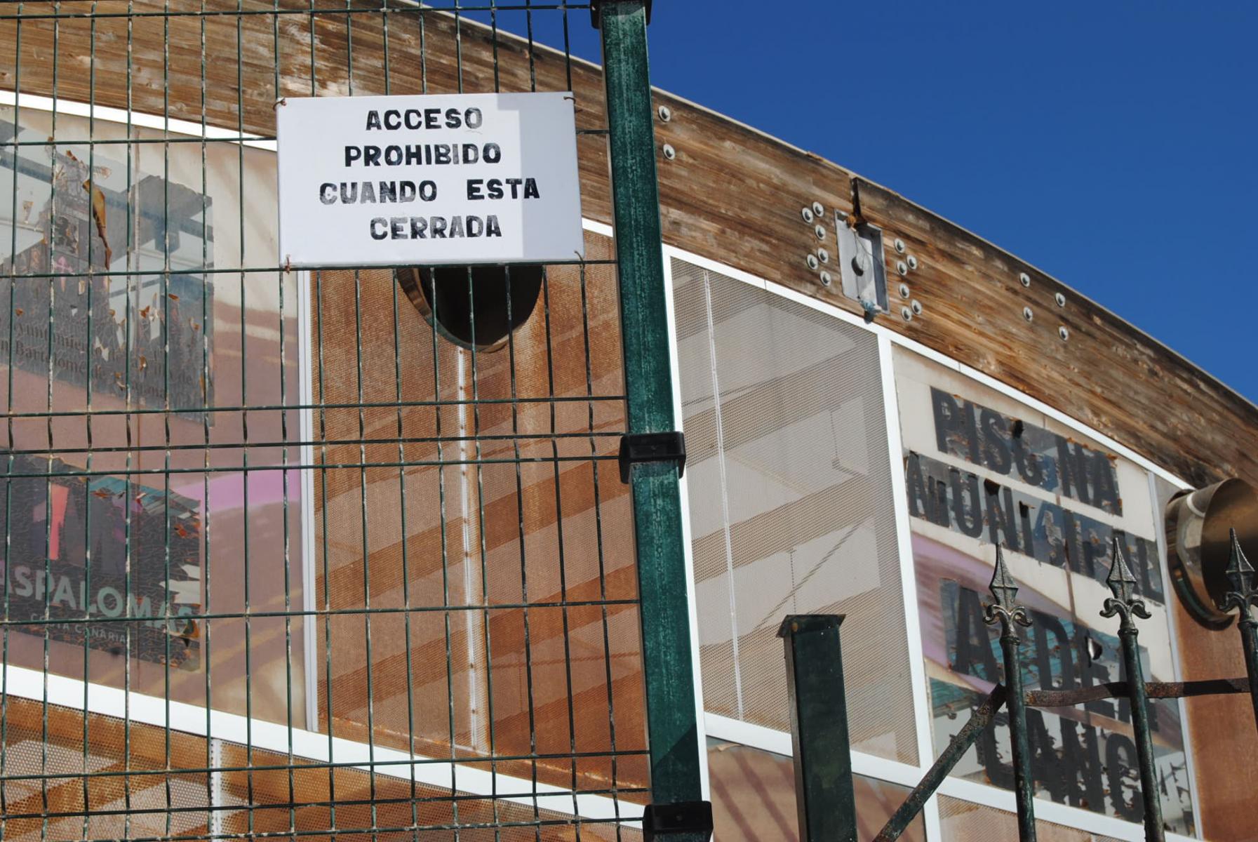 La piscina cubierta de Aldea Blanca tiene en su puerta un pequeño cartel con la prohibición expresa de entrada a la misma cuando está cerrada. El horario de uso público es de once de la mañana a seis de la tarde, de lunes a viernes.