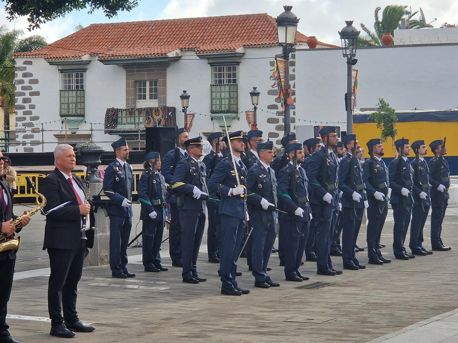 La plaza de San Juan acogió a primera hora de este miércoles el acto del izado solemne de la bandera nacional para conmemorar el décimo aniversario de la proclamación del rey Felipe VI, protagonizado por el Ala 46 del Ejército del Aire. El evento estuvo presidido por el alcalde de la ciudad de Telde, Juan Antonio Peña, y por el coronel jefe de la Base Aérea de Gando y Ala 46, Juan José Terrados. Entre los presentes también se encontraron el jefe de la Policía Local, Félix Ramos, así como más autoridades civiles y militares.