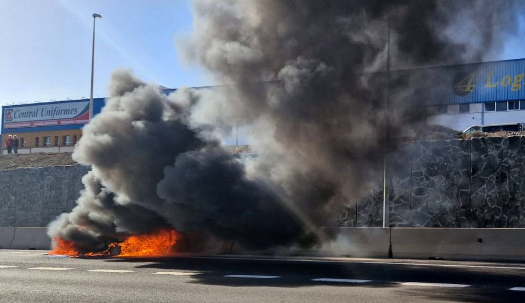 El incendio de un vehículo hace unos minutos en la GC 1 a la altura del polígono industrial Ajimar en Telde (sentido Sur) provoca grandes retenciones. Los bomberos del consorcio se desplazan al lugar para sofocar el fuego.