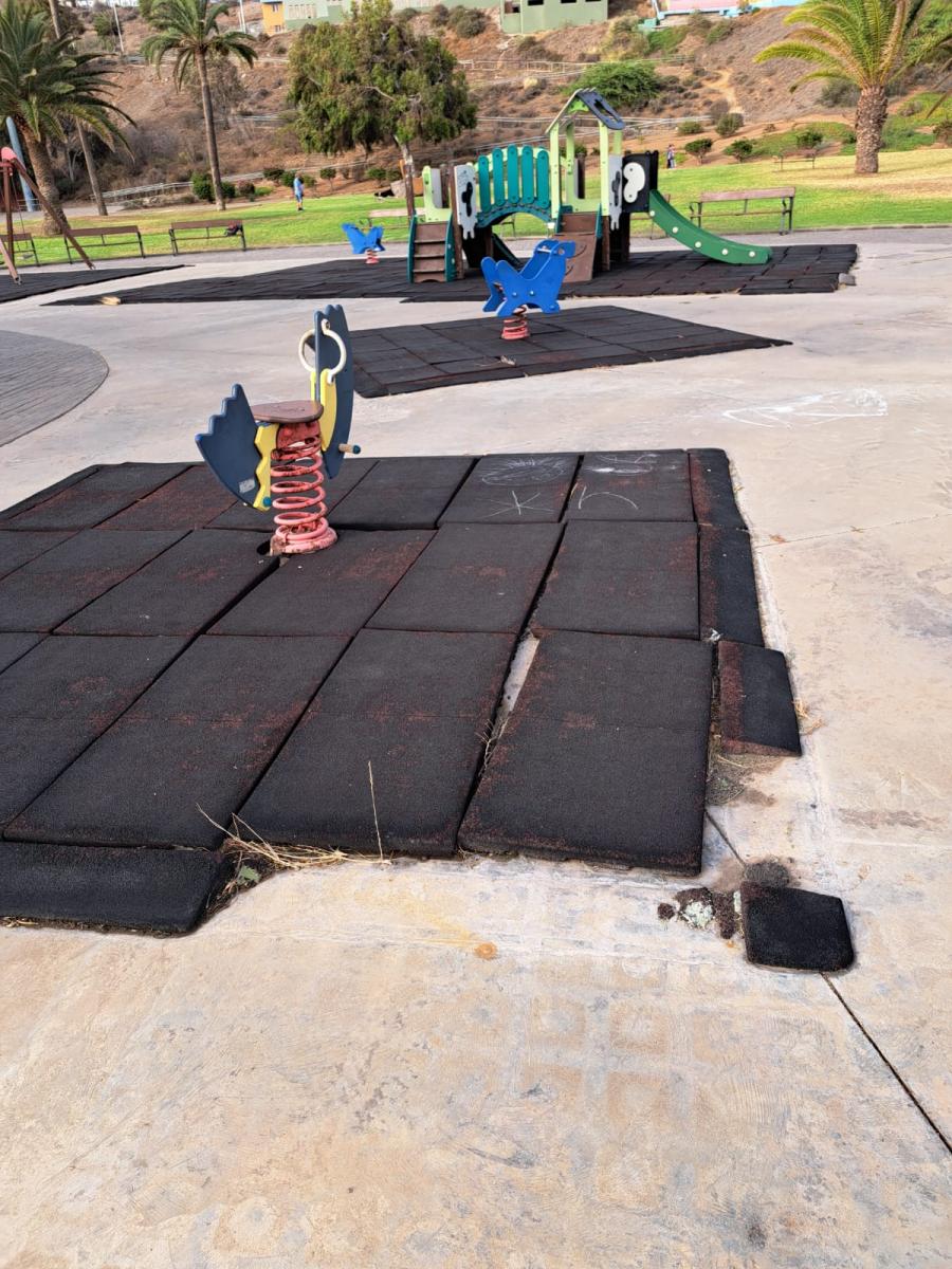 El Parque de las Mil Palmeras, el mayor parque urbano de Telde en extensión y por valores de flora y fauna autóctona tanto árboles, palmeras y aves migratorias, tiene un parque infantil destacado por el espacio que ocupa en deterioro y abandono profundo. Inseguridad por pavimento, por tornillos al aire, por oxidación de los materiales, por plásticos de los elementos que pueden producir cortes, faltan papeleras… suma y sigue. Se pide intervención ya. Las imágenes hablan solas. Hay espacios que se han eliminado y la solución pasa por arreglar no desaparecer.