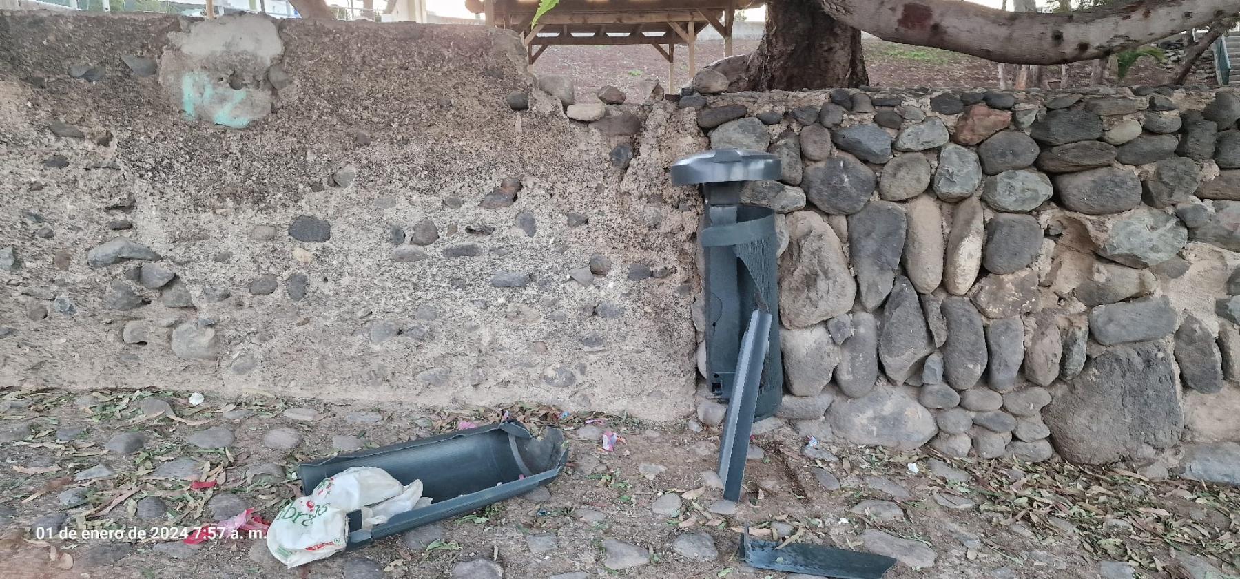 Los vándalos hicieron de las suyas la madrugada de éste 1 de enero de 2024 al destrozar varias papeleras del merendero del Corredor Paisajístico de Telde (situado a pocos metros del puente de los Siete Ojos del Barranco Real, a la altura de El Cubillo) y dejar basura esparcida por todo el espacio.
