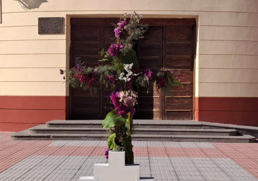 El Patronato ‘La Sal’ de La Garita en Telde, enrama su Cruz en la plaza de la Iglesia del barrio por el Día de la Cruz que se celebra hoy viernes.