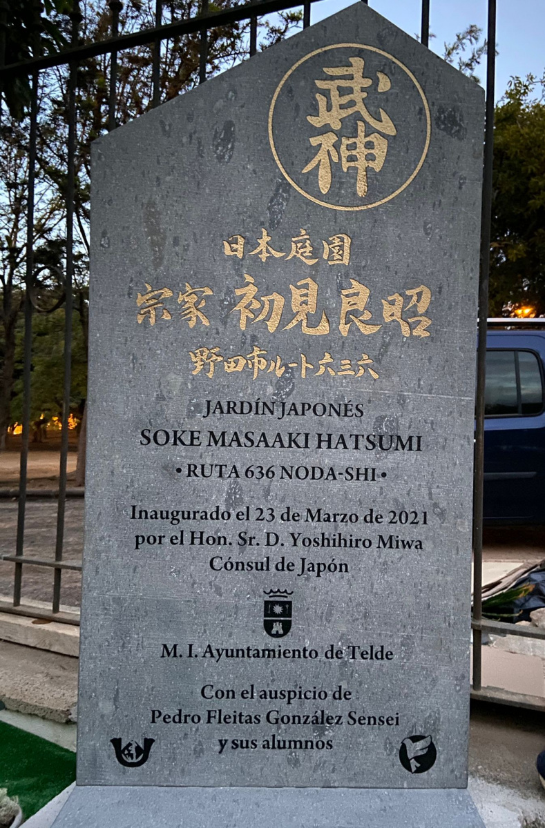 “Es importante soñar para que se transforme en realidad, hay que intentarlo…” Han pasado 7 días desde que el grupo de alumnos del Maestro Pedro Fleitas González puso manos a la obra para cumplir un sueño anhelado por todos ,y en especial el sueño del maestro Pedro, el cual era entregarle en vida, a su querido maestro Dr. Masaaki Hatsumi, un espacio de recuerdo y homenaje, un punto de conexión físico, el cual une a Telde en Islas Canarias con Noda-shi en la isla de Japón, un Jardin de estilo japonés de línea zen, con elementos que nos recuerdan al Dr. Masaaki Hatsumi y que regala prosperidad y paz a todos los que lo visitan. Aquí podrán encontrar tranquilidad, simpleza, belleza, armonía, podrán meditar y escuchar los arboles al viento, los pajaros y su volar.
