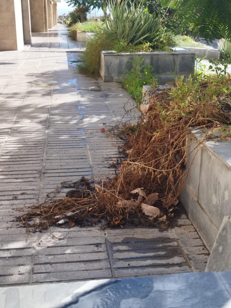 1. esas viviendas residenciales don privadas, no están recepcionadas por el Ayuntamiento, ni por la empresa, FCC que lleva parques y jardines, no es la primera vez que hay quejas pues eso es por culpa de la empresa que hizo las viviendas cobraron el dinero y si te ví no me acuerdo