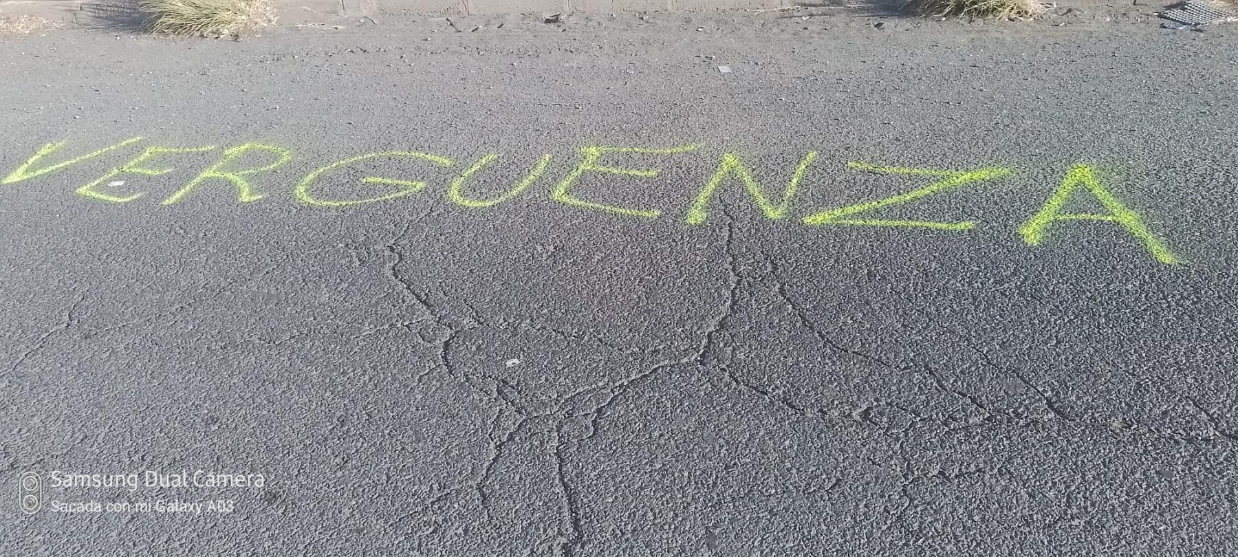 EL PUEBLO SE CANSA DE LAS MENTIRAS PARA ASFALTAR EL ACCESO A SALINETAS DESDE LA GC-1 Y APARECEN PINTADAS EN LA ZONA: «POLÍTICOS INÚTILES»