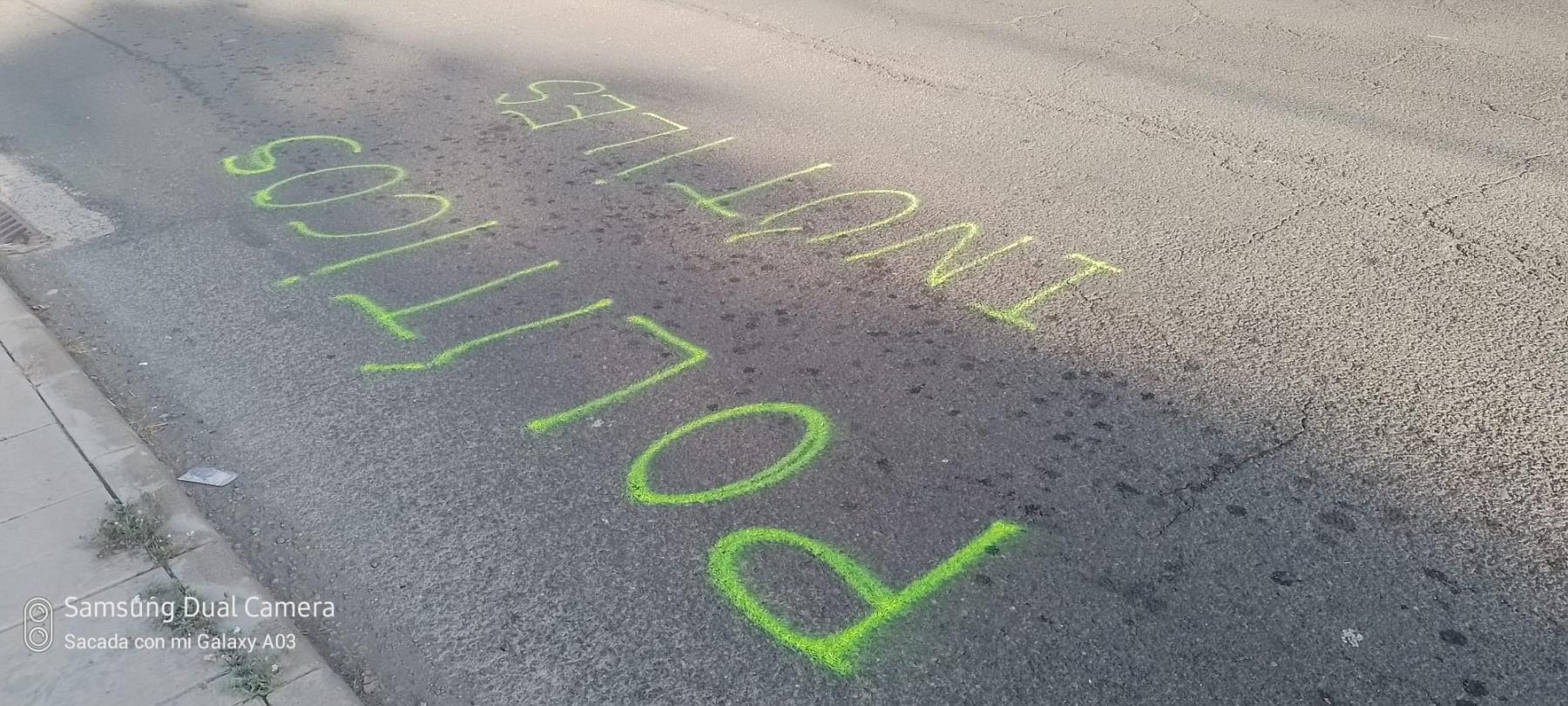 EL PUEBLO SE CANSA DE LAS MENTIRAS PARA ASFALTAR EL ACCESO A SALINETAS DESDE LA GC-1 Y APARECEN PINTADAS EN LA ZONA: «POLÍTICOS INÚTILES»