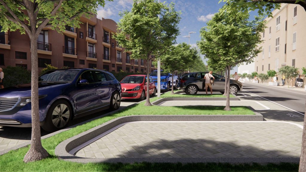En esta línea, cabe señalar que la nueva acera medirá 3 metros y en ella se pondrán árboles nuevos de porte medio “para no molestar a los transeúntes que pasan por la zona y evitar así que se vean afectadas las viviendas existentes”, asegura el edil. También se pondrá mobiliario urbano nuevo, como bancos de descanso, quedando como la otra acera del espacio que dio origen a la tipología urbanística actual. Por su parte, los nuevos aparcamientos que se pretenden instalar se realizarán a través de adoquines, eliminando el asfaltado, que evitarán el efecto denominado isla de calor, cumpliendo con los objetivos de la Agenda 2030.