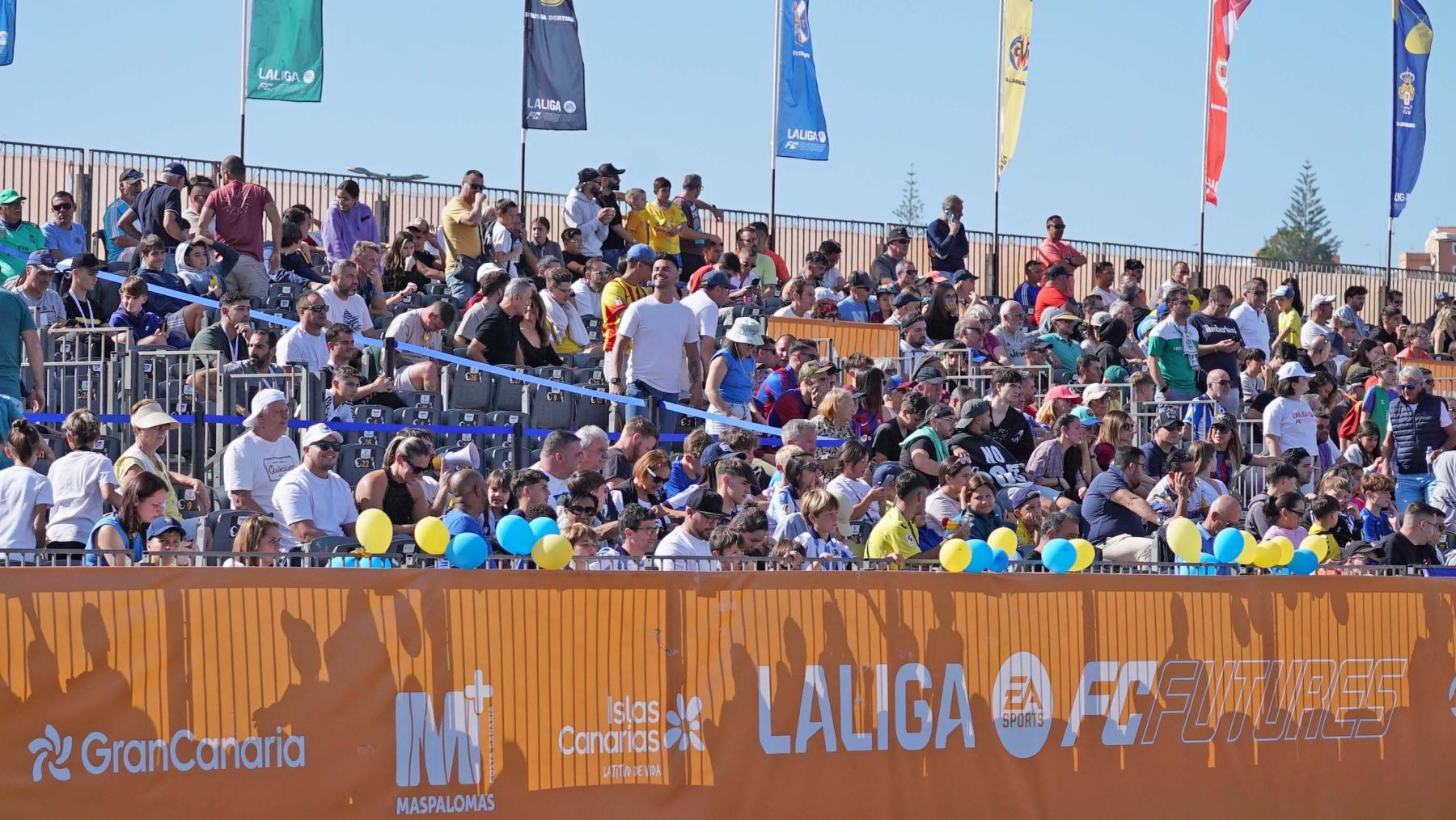 En las gradas de la Ciudad Deportiva de Maspalomas, lleno absoluto con miles de seguidores y caras conocidas como la de Paquito Ortiz, responsable de innovación de la Fundación Canaria UD Las Palmas y ex jugador amarillo, el periodista  José Ramón de la Morena, cuya Fundación promueve junto a LALIGA este torneo o Ángel María Villar, ex presidente de la Real Federación Española de Fútbol, que se mostraba encantado de poder presenciar este torneo “en esta maravillosa tierra viendo a unos chicos en periodo de aprendizaje que no deben olvidar que para ser jugadores al máximo nivel tienen que sacrificarse mucho y compaginar estudios con este deporte.”