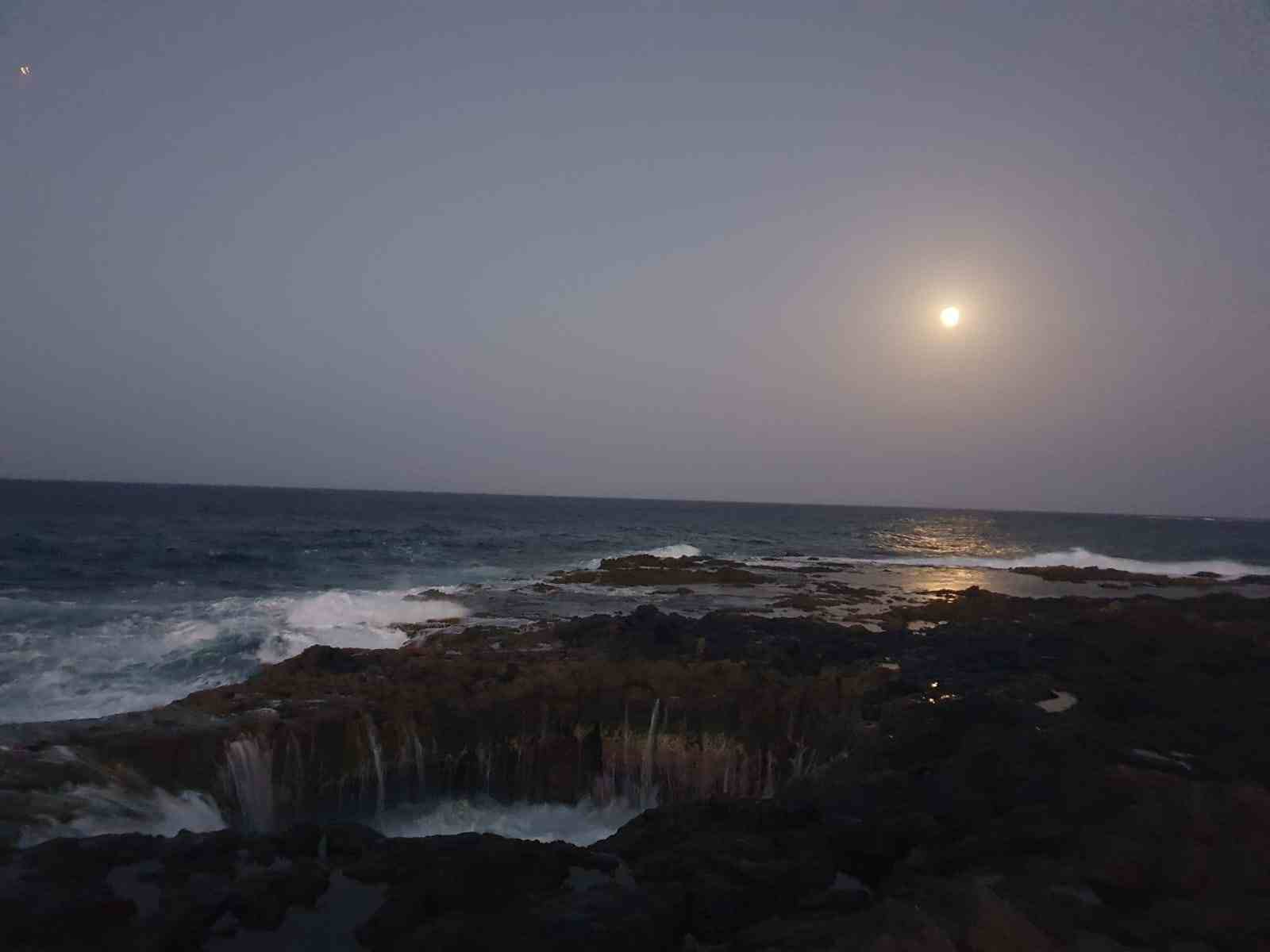 Los amantes de la fotografía se ponen las botas en este singular enclave de la costa grancanaria. Nada más llegar, dos grandes piscinas naturales talladas en la roca dan la bienvenida al visitante. Se trata de impresionantes huecos que se llenan y vacían de agua con la marea mientras el bufadero hace su trabajo expulsando agua a presión con el golpeteo de las olas. Y es que las piedras volcánicas de esta peculiar fantasía natural presentan huecos por los que se cuela el agua del mar. Y todo a una velocidad de vértigo. Ésta es, sin duda, la zona más espectacular de este mágico lugar al que, curiosamente, no acuden demasiados turistas. Además, no tiene pérdida, porque los resoplidos del agua se escuchan a considerable distancia.