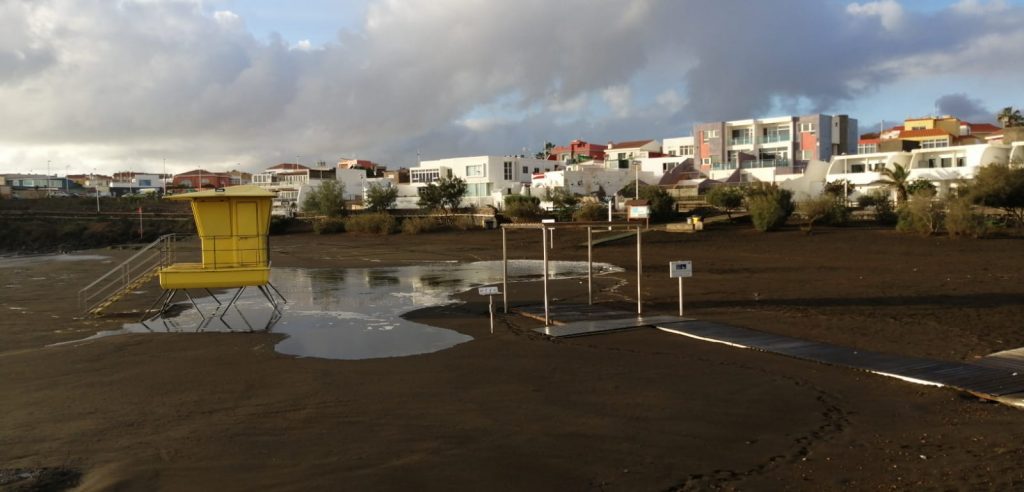 La playa de La Garita apareció ayer por la tarde con pumitas y bombas volcánicas en algunas…