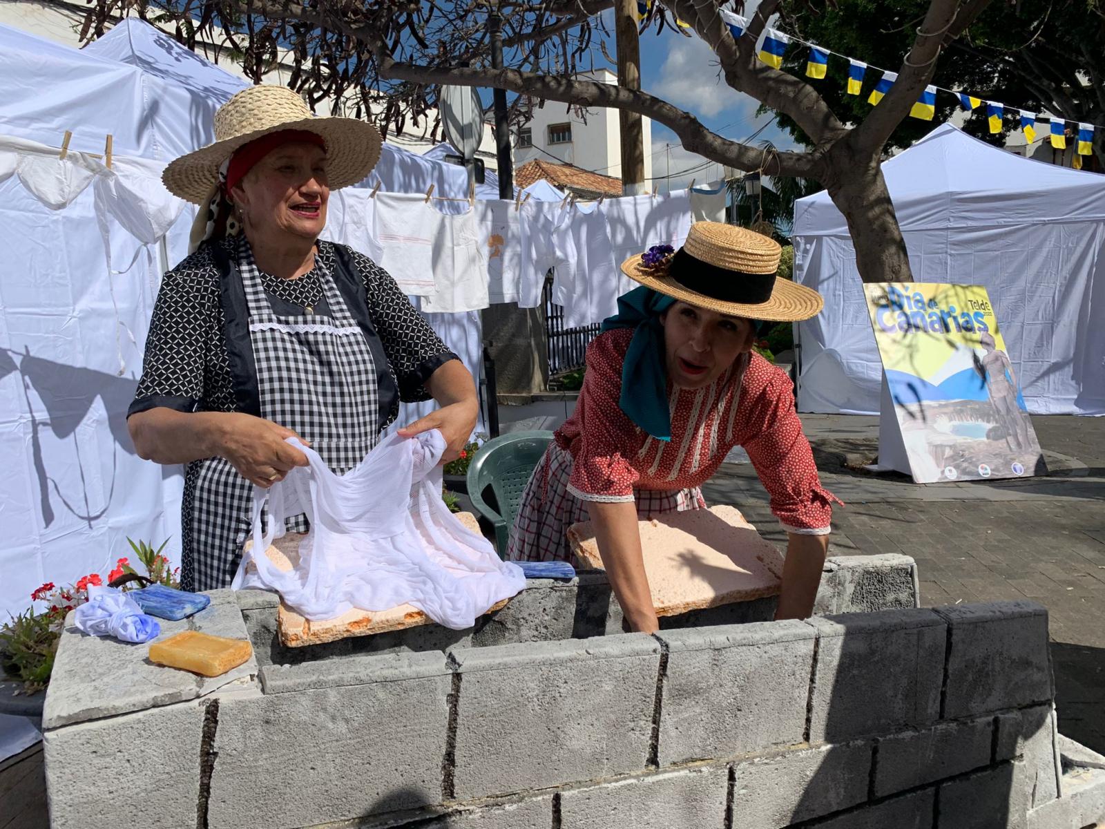 Asimismo, integrantes de la asociación de vecinos Roque Azucarero recrearon diferentes escenas canarias y antiguos oficios, como el de las lavanderas y las planchadoras, además de mostrar una descamisada y cómo se partían las almendras.