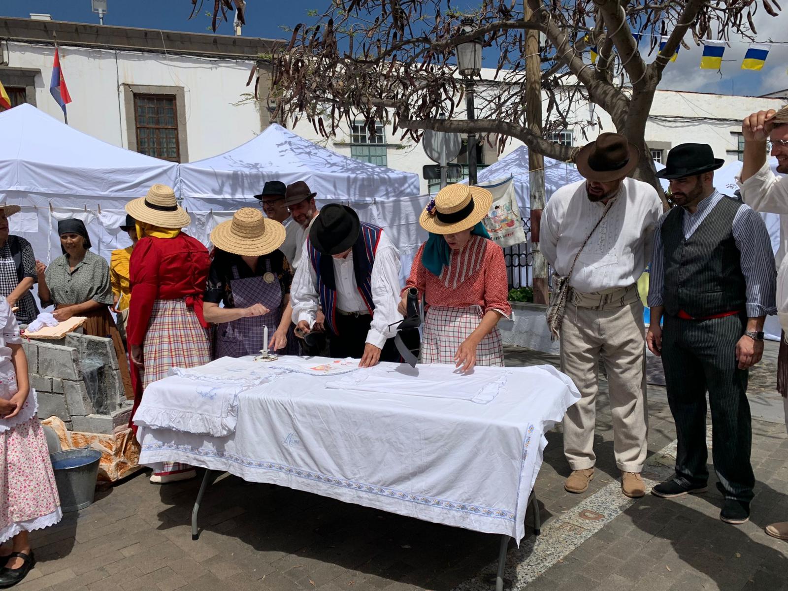 Asimismo, integrantes de la asociación de vecinos Roque Azucarero recrearon diferentes escenas canarias y antiguos oficios, como el de las lavanderas y las planchadoras, además de mostrar una descamisada y cómo se partían las almendras.
