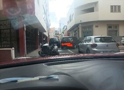 vehículo GRIS, saliendo de la ZONA SEÑALIZADA PARA USO EXCLUSIVO DE PERSONAS CON DISCAPACIDAD, calle Pedro de la Ascensión, Telde.