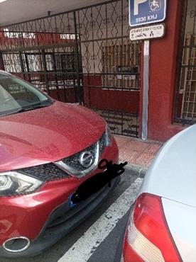 Vehículo  ROJO estacionado en la ZONA SEÑALIZADA PARA USO EXCLUSIVO DE PERSONAS CON DISCAPACIDAD, calle Pedro de la Ascensión, Telde.