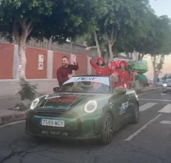 FLAGRANTE DELITO CONTRA LA SEGURIDAD VIAL DEL ALCALDE DE TELDE GRABADO MIENTRAS SACABA MEDIO CUERPO POR LA VENTANILLA DEL COCHE EN LA COMITIVA DE PAPÁ NOEL