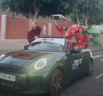 FLAGRANTE DELITO CONTRA LA SEGURIDAD VIAL DEL ALCALDE DE TELDE GRABADO MIENTRAS SACABA MEDIO CUERPO POR LA VENTANILLA DEL COCHE EN LA COMITIVA DE PAPÁ NOEL