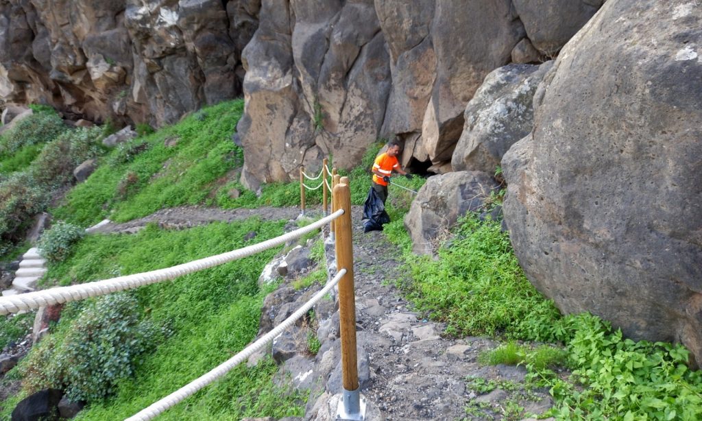 Hernández conoció el trabajo que está realizando el personal de Gesplan, algunos de ellos del municipio, que consiste fundamentalmente en la limpieza, retirada de vegetación y conservación en general, especialmente tras las incidencias por el paso de la tormenta Hermine. En este sentido, cabe recordar que el tramo entre Valle de los Nueve y San José de Las Longueras está temporalmente cerrado para realizar estas tareas y para la retirada, con maquinaria pesada, de los desprendimientos ocasionados por el temporal, en este recorrido, de aproximadamente un kilómetro de extensión.