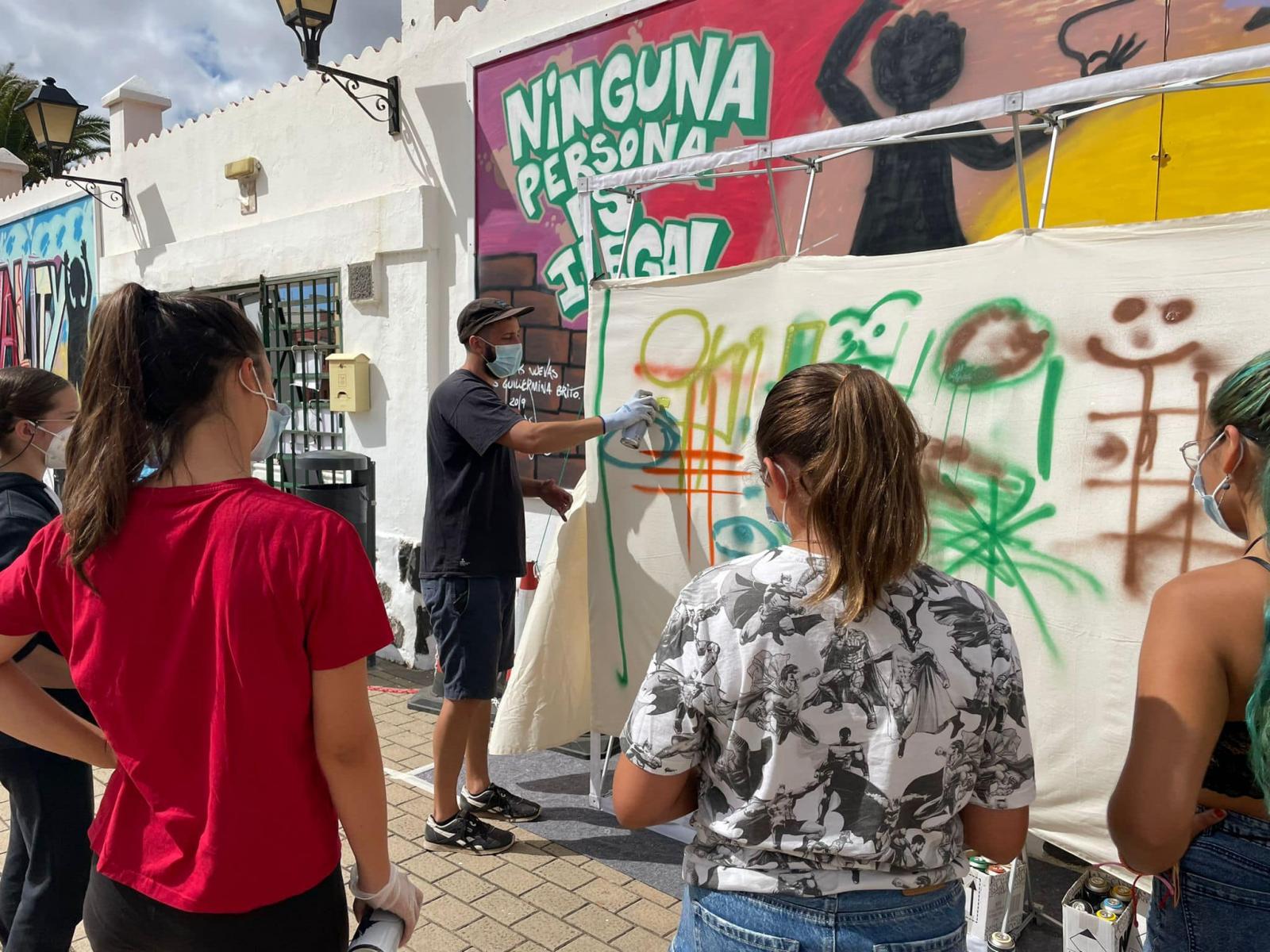 Unos 20 jóvenes participaron esta semana en el taller de grafiti organizado por el Ayuntamiento de Telde para conmemorar el Día Internacional de la Juventud, una jornada que ha estado marcada por la reinvindicación de la igualdad y el derecho a oportunidades de futuro.