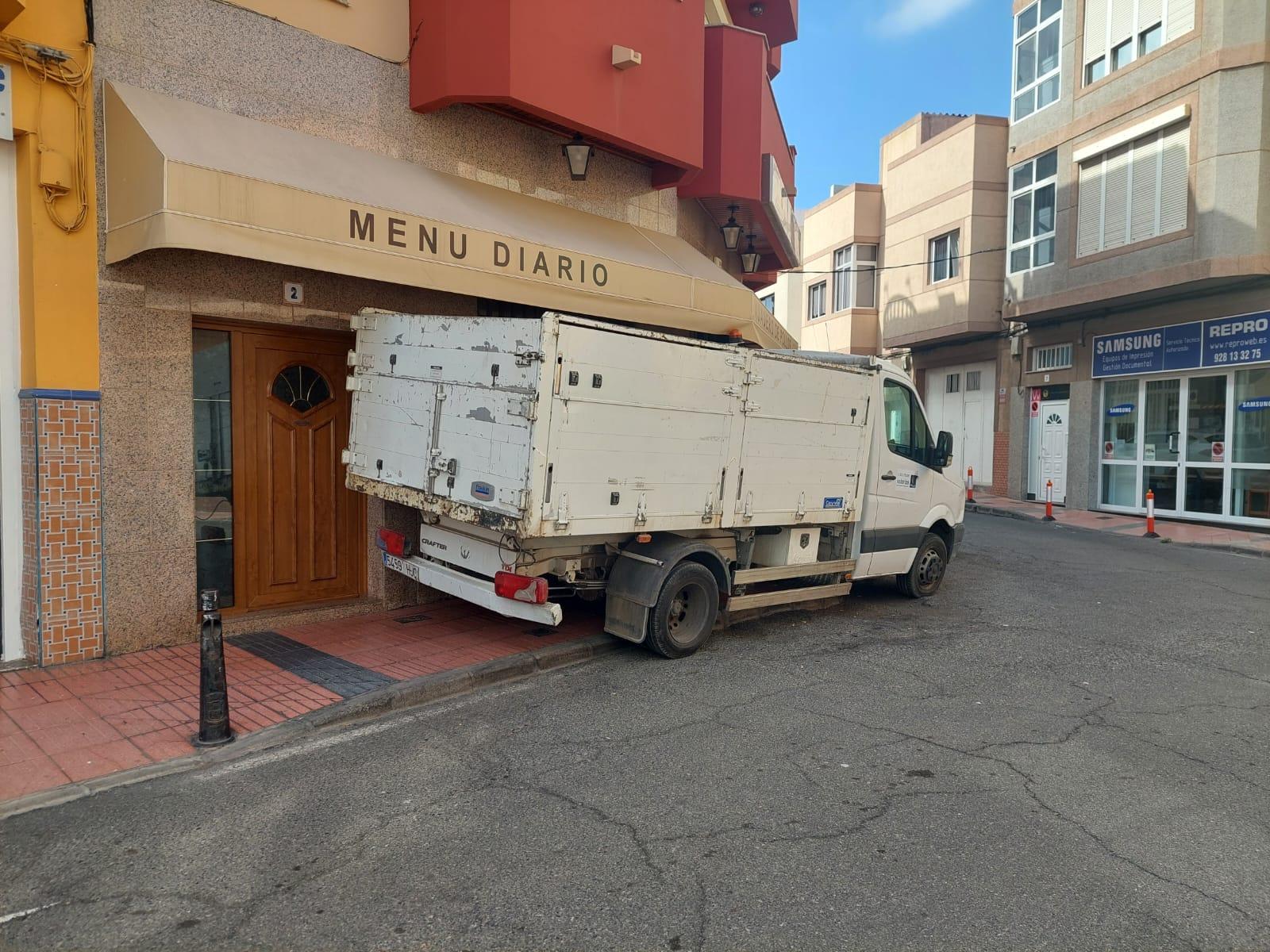 INCIVISMO Y CARADURA DE OPERARIOS DEL SERVICIO DE LIMPIEZA DE TELDE QUE APARCAN UN CAMIÓN DE TRABAJO EN PLENA ACERA EN CASAS NUEVAS