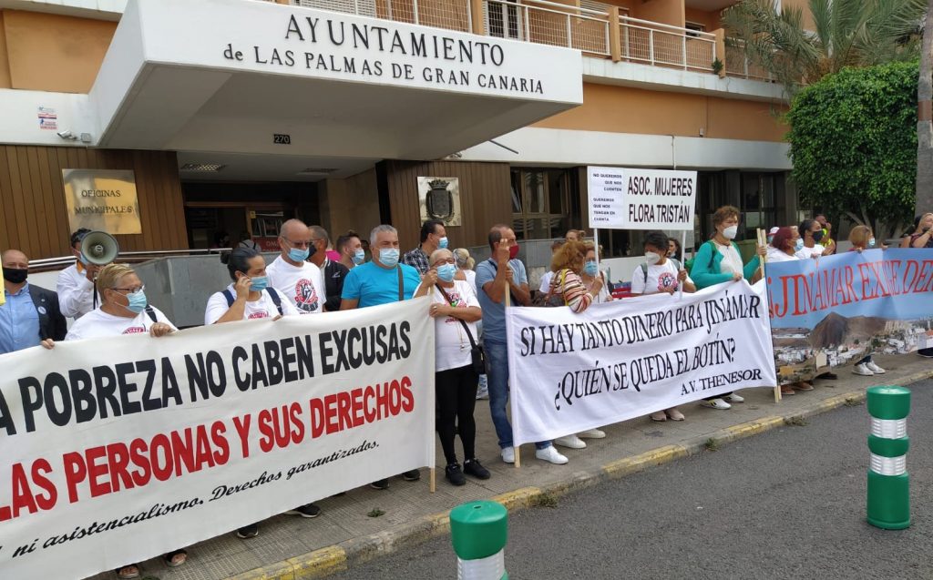 El Movimiento Vecinal de Jinámar se manifestó delante de las puertas del Ayuntamiento capitalino, en la calle León y Castillo 270, este miércoles 6 de octubre de 2021, desde las 10:00 de la mañana.