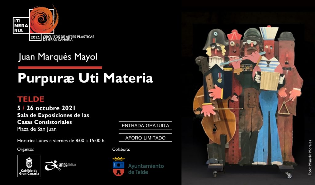 La sala de exposiciones de las Casas Consistoriales de Telde acoge a partir del martes, a las 11 horas, la muestra Purpurae uti materia, de Juan Marqués Mayol, organizada por el Centro de Artes Plásticas del Cabildo en el marco del circuito ‘Itineraria’ impulsado por los municipios de la isla gracias a la Consejería de Cultura insular.