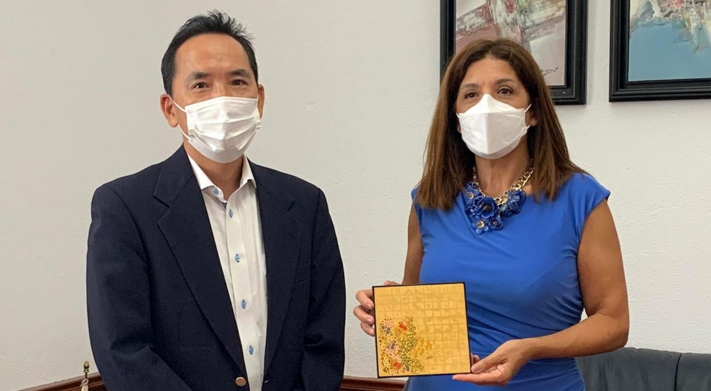 Durante el encuentro, Hernández y Kusunoki recordaron la vinculación de Telde con el país nipón -el municipio dedica la plaza Hiroshima y Nagasaki a Japón y a su compromiso con la paz- y acordaron seguir estrechando esta relación en el futuro con nuevas acciones.