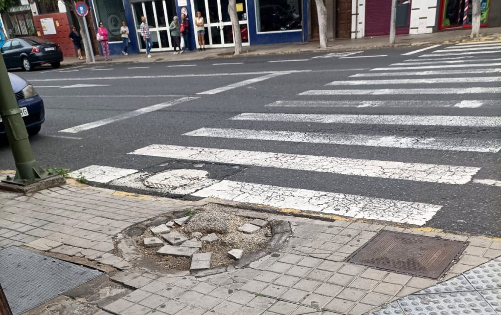 Vecinos de Telde denuncian a través de ONDAGUANCHE, que en la acera existente de la intersección de las calles Pablo Neruda y Joan Miró, junto al mercado municipal, han quitado un árbol rellenando de cemento la base del mismo quedando en pésimo y peligroso estado. Incluso hay trozos de adoquines sueltos, lo que obviamente complica la integridad de los transeúntes que salen por ese punto del paso de peatones existente en la zona. Exigen a los responsables municipales tomar cartas en el asunto antes de lamentar daños personales.