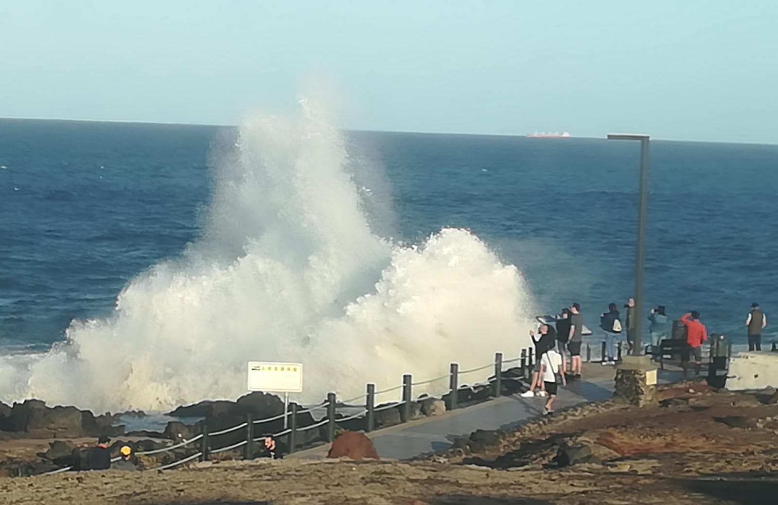 La costa de Telde, en la vertiente oriental de Gran Canaria, se encuentra bajo el influjo de un fuerte oleaje convirtiendo al mar en un espectáculo imponente. Un reportero gráfico de ONDAGUANCHE captaba este domingo estas impresionantes imágenes del Bufadero de La Garita, donde la bravura del mar provocaba que al impactar con las rocas se elevara cientos de metros sobre el paseo marítimo ante la mirada atónita de vecinos transeúntes que contemplaban admirados este espectáculo de la naturaleza.