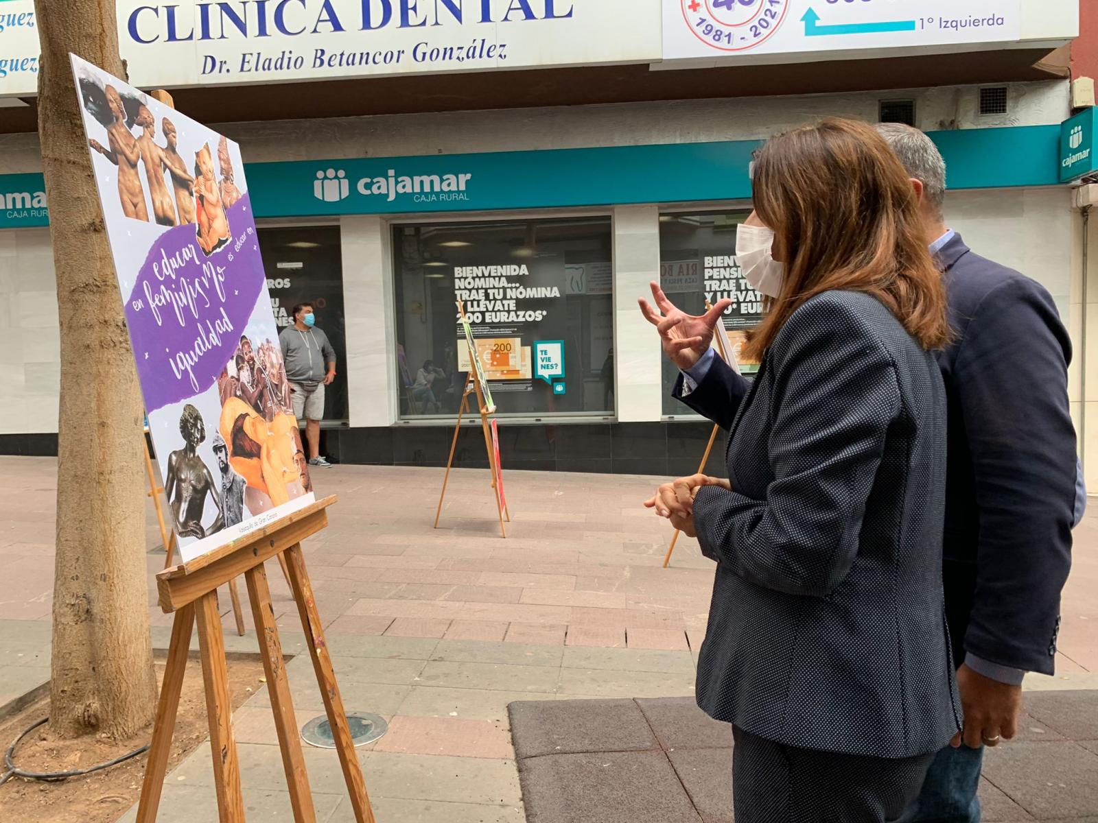 La alcaldesa de Telde, Carmen Hernández, y el concejal de Políticas de Igualdad, Jonay López, visitaron este martes, en la Zona Comercial Abierta de San Gregorio, la exposición ‘BE FEMINIST. Carteles Feministas con la técnica de Collage’, en donde pudieron contemplar los 23 carteles en donde la carga reivindicativa es la protagonista. Se trata de una actividad incluida en la campaña ‘Voces con Alma de Lucha’ impulsada por el área para conmemorar el 25N, Día Internacional para la Eliminación de la Violencia contra las Mujeres.