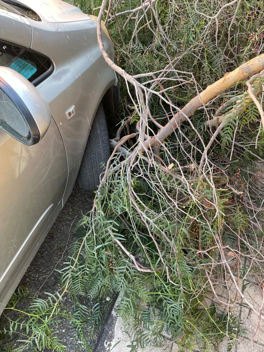 La falta de poda y mantenimiento de la arboleda de la plaza de Ojos de Garza en Telde provocó un grave incidente el pasado 26 de diciembre según ha podido comprobar hoy ONDAGUANCHE. En torno a las 09:00 de la mañana una rama de grandes dimensiones y peso se desplomó de un árbol de la citada plaza cayendo sobre la acera de la calle Nuestra Señora de la Cabeza, e impactando lateralmente con un vehículo que estaba estacionado allí. Solo la providencia evitó que alcanzara a algún transeúnte ya que es muy concurrida.