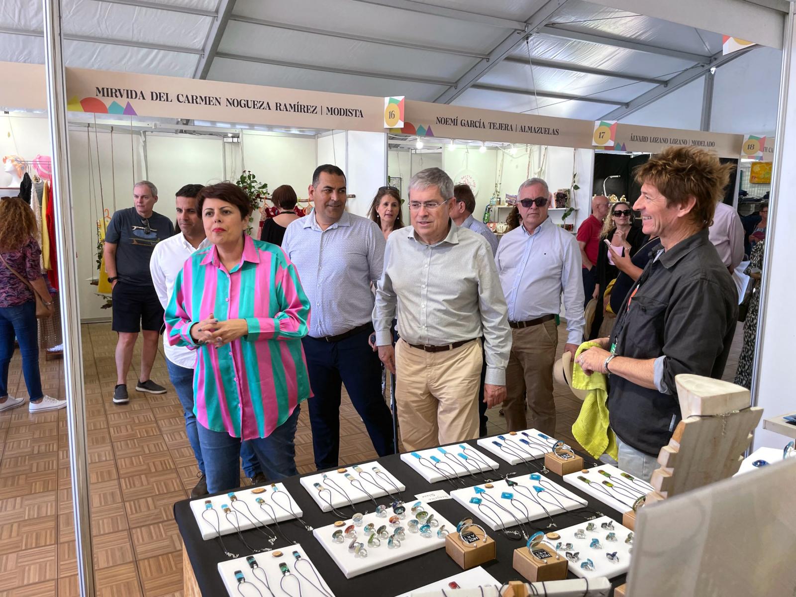 La consejera de Desarrollo Económico, Industria, Comercio y Artesanía del Cabildo de Gran Canaria, Minerva Alonso, acompañada del alcalde del Ayuntamiento de San Bartolomé de Tirajana, Marco Aurelio Pérez, la directora gerente de la Fedac, Águeda Hernández, y la directora general de Infecar, Feria de Gran Canaria, Natalia Santana, ha recorrido cada uno de los estands presentes en esta cita, dándoles la bienvenida a esta edición y conociendo de primera mano sus piezas.