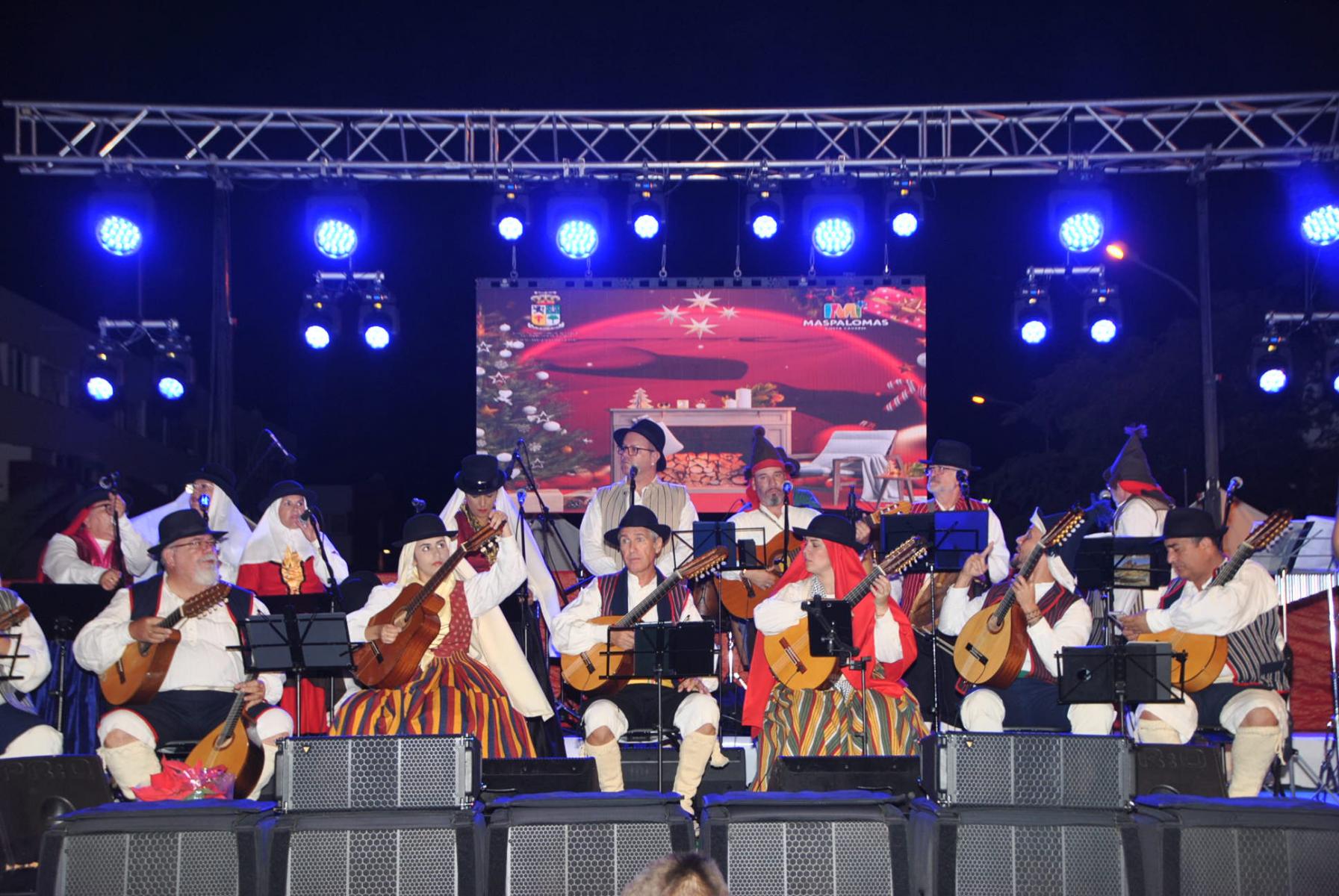 La zona comercial abierta de la Avenida de Gáldar, en San Fernando de Maspalomas, centralizó este viernes los actos festivos organizados por el Ayuntamiento de San Bartolomé de Tirajana para escenificar el encendido de la luminotecnia navideña que se ha instalado en todos los barrios del municipio.