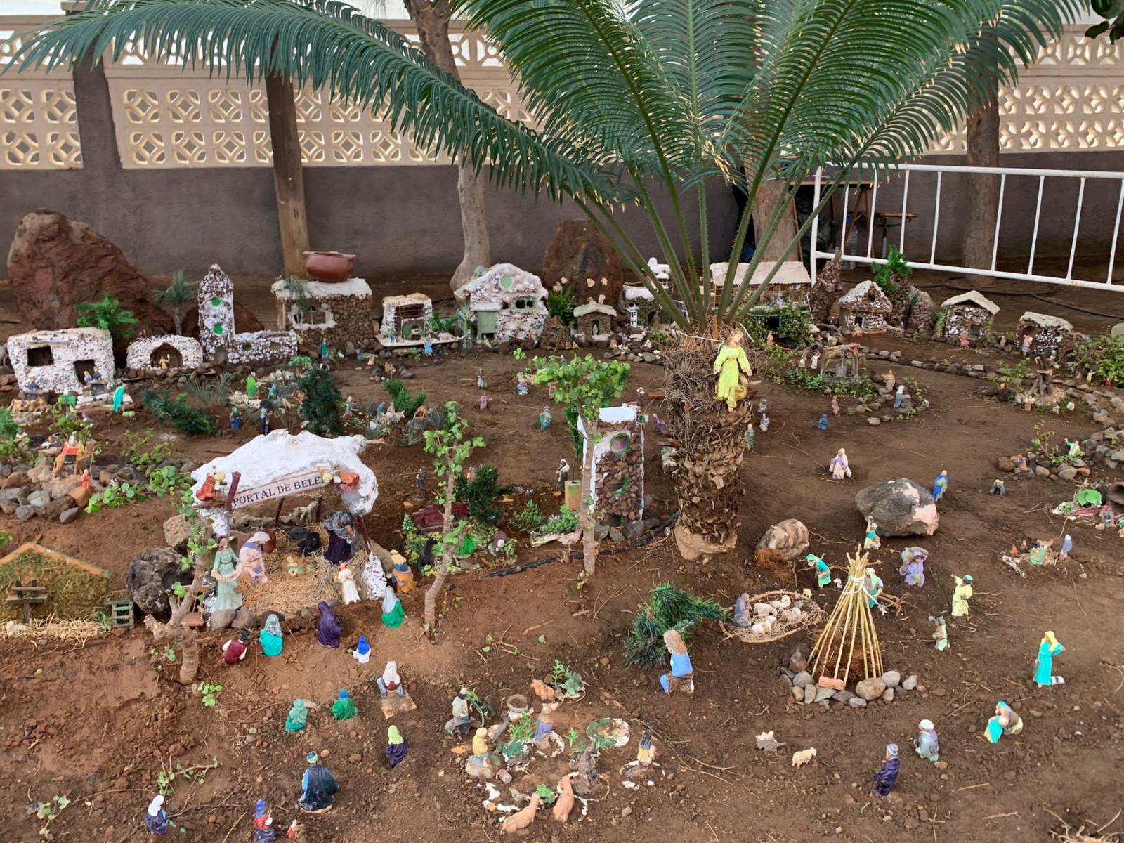 Este mediodía se inauguró el nacimiento canario al aire libre montado con material reutilizado en el espacio ajardinado público de la calle de Palmera, en La Garita, por el Patronato de Fiestas La Sal que dirige hace décadas Julia Martel.