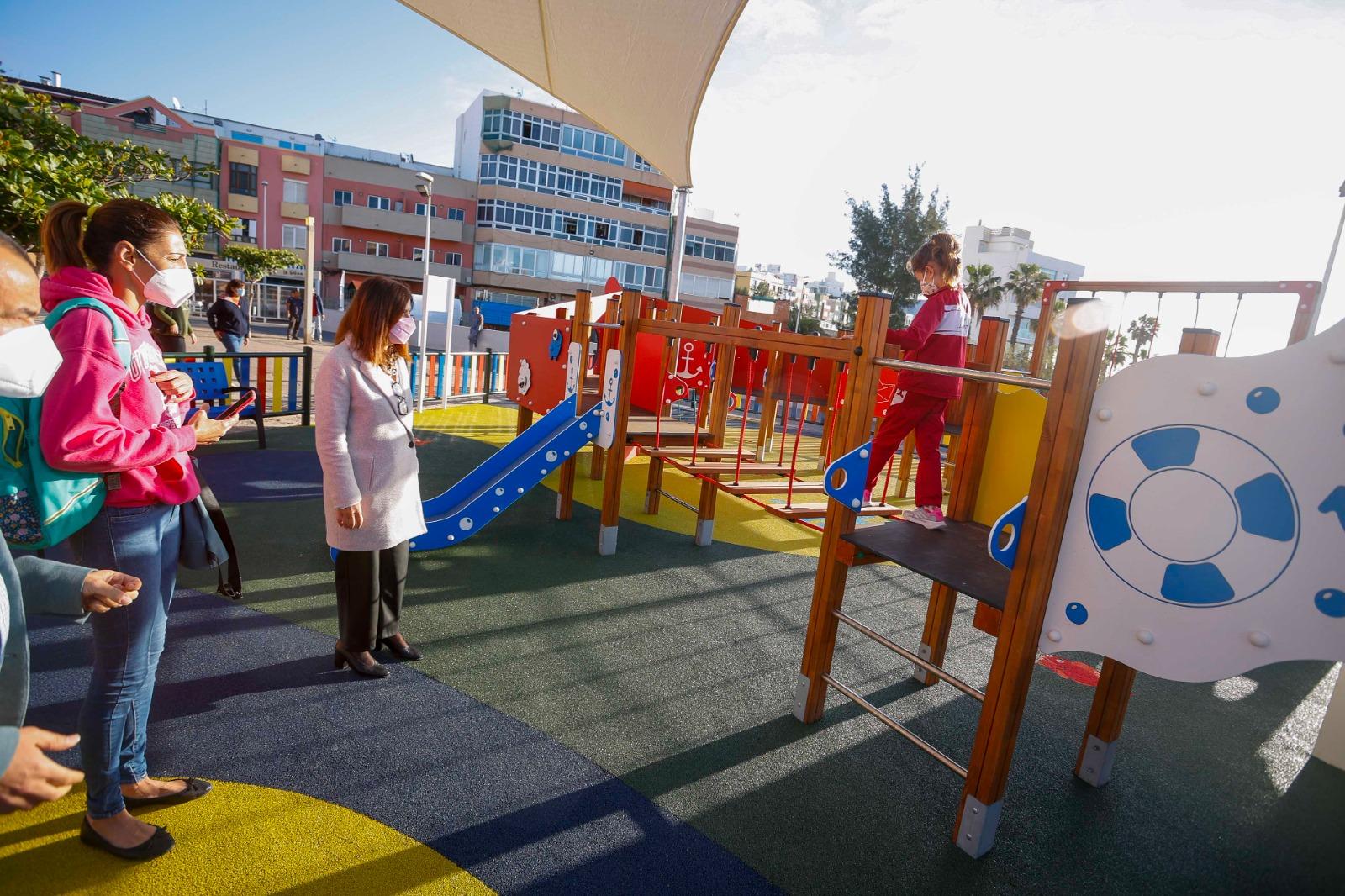 La alcaldesa de Telde, Carmen Hernández, y el concejal de Parques y Jardines, Álvaro Monzón, visitaron este viernes el parque infantil de La Garita donde ya se culminaron las obras de renovación con nuevos juegos y un pavimento continuo de llamativos colores, al igual que los bancos, y está ya disponible para el disfrute de la ciudadanía.