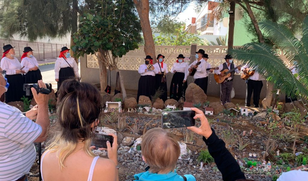 La apertura del nacimiento estuvo animada por la parranda ‘La Sal’ que interpretó un repertorio de canciones navideñas. Las piezas que componen las diferentes escenas de este belén están hechas de material reciclaje en los talleres artesanales del Patronato La Sal. Estuvieron presentes entre los asistentes, el concejal Álvaro Monzón (MxTelde) y la exconcejala María González Calderín (PP).