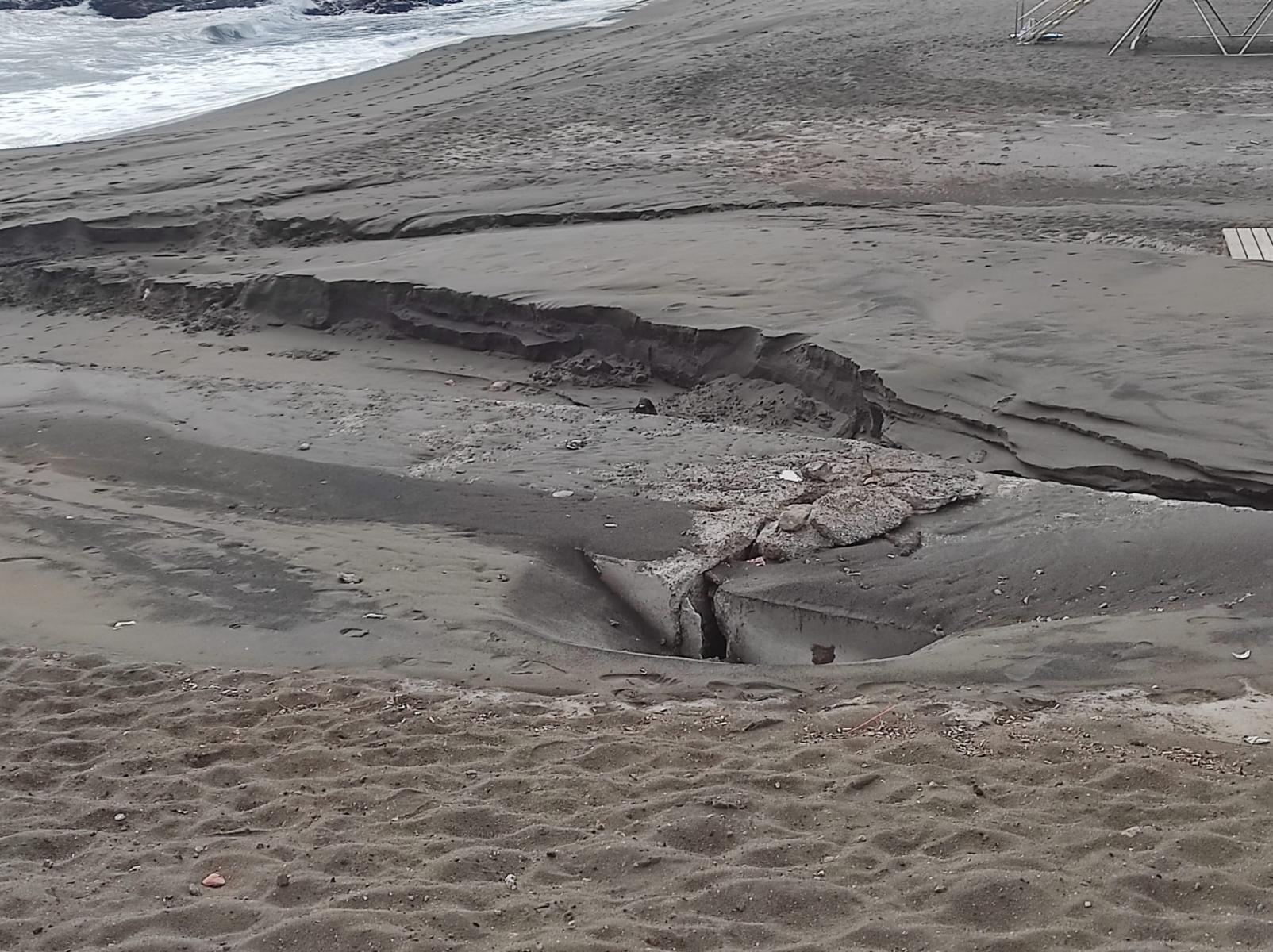 LA LLUVIA DESTROZA LA PLAYA DE LA GARITA EN TELDE Y SU RED DE ALCANTARILLADO