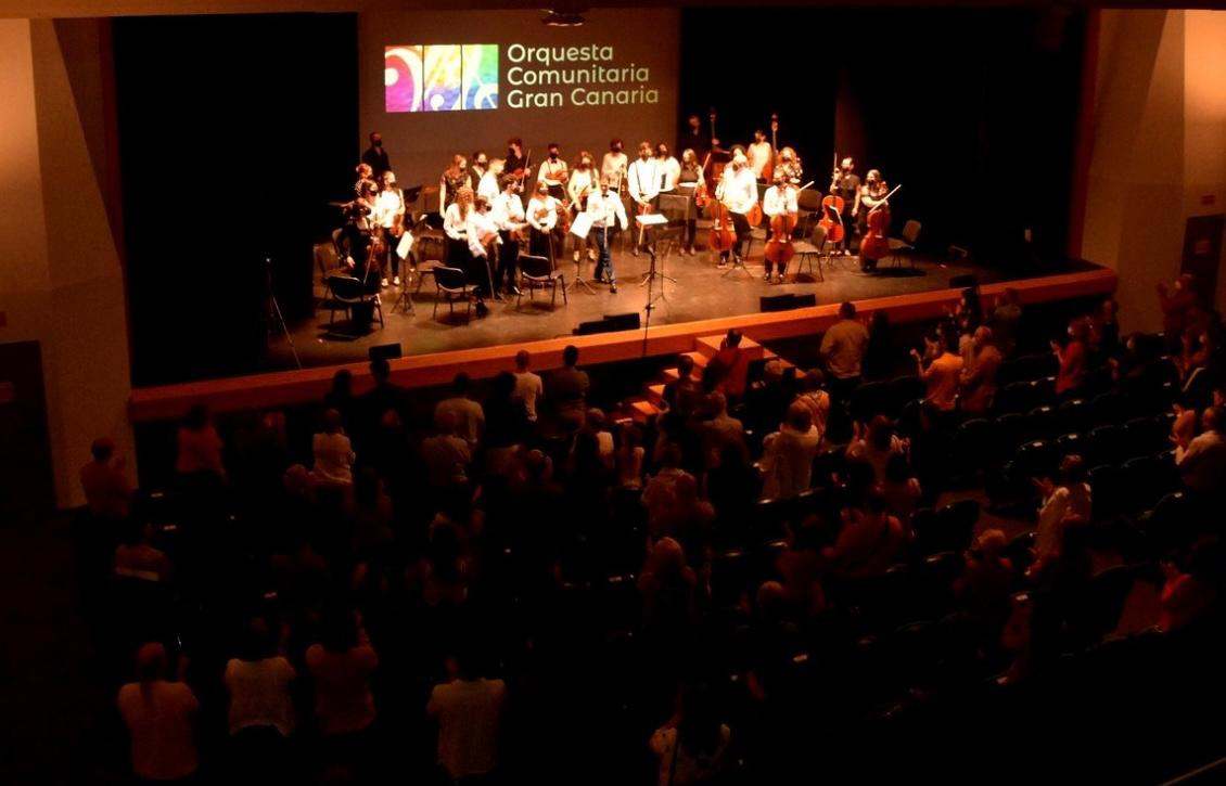La Orquesta Comunitaria de Gran Canaria triunfó este sábado en el Teatro Municipal Juan Ramón Jiménez -que colgó el cartel de ‘aforo completo’- con su primer concierto.