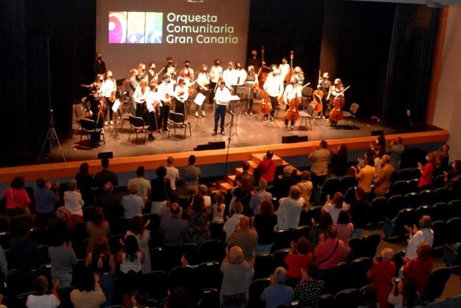 La Orquesta Comunitaria de Gran Canaria triunfó este sábado en el Teatro Municipal Juan Ramón Jiménez -que colgó el cartel de ‘aforo completo’- con su primer concierto.