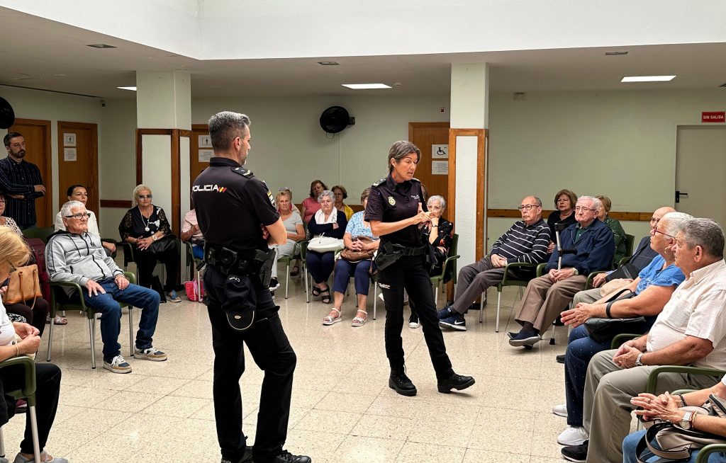 A través de representaciones en directo, los agentes escenificaron algunos de los riesgos, llevando la teoría a la práctica. En este sentido, destacaron entre las estafas más comunes las que se ejecutan de manera online o telefónica, a través del cara a cara ganándose la confianza de las víctimas o aquellas cuyo objetivo es hacerse con apropiaciones indebidas o con la ocupación ilegal de viviendas.