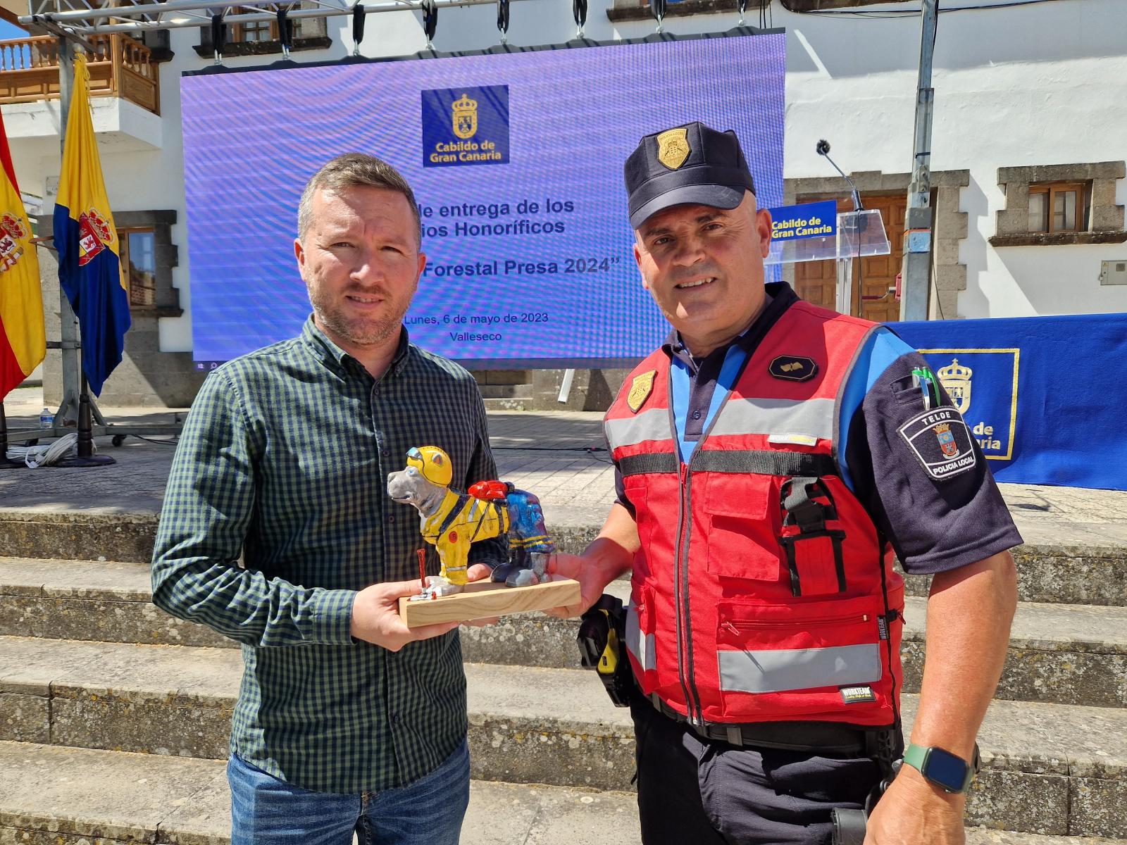 Al acto, celebrado en la plaza de Valleseco con motivo del Día Internacional del Bombero Forestal, acudió el Concejal de Seguridad Ciudadana del Ayuntamiento de Telde, Miguel Rodríguez, acompañado de José Florido, oficial jefe de la unidad de drones de la Policía Local de Telde, quien recogió el galardón. En la ceremonia también estuvieron presentes el presidente del Cabildo, Antonio Morales, y el alcalde del Ayuntamiento de Valleseco, José Luis Rodríguez, entre otros representantes.