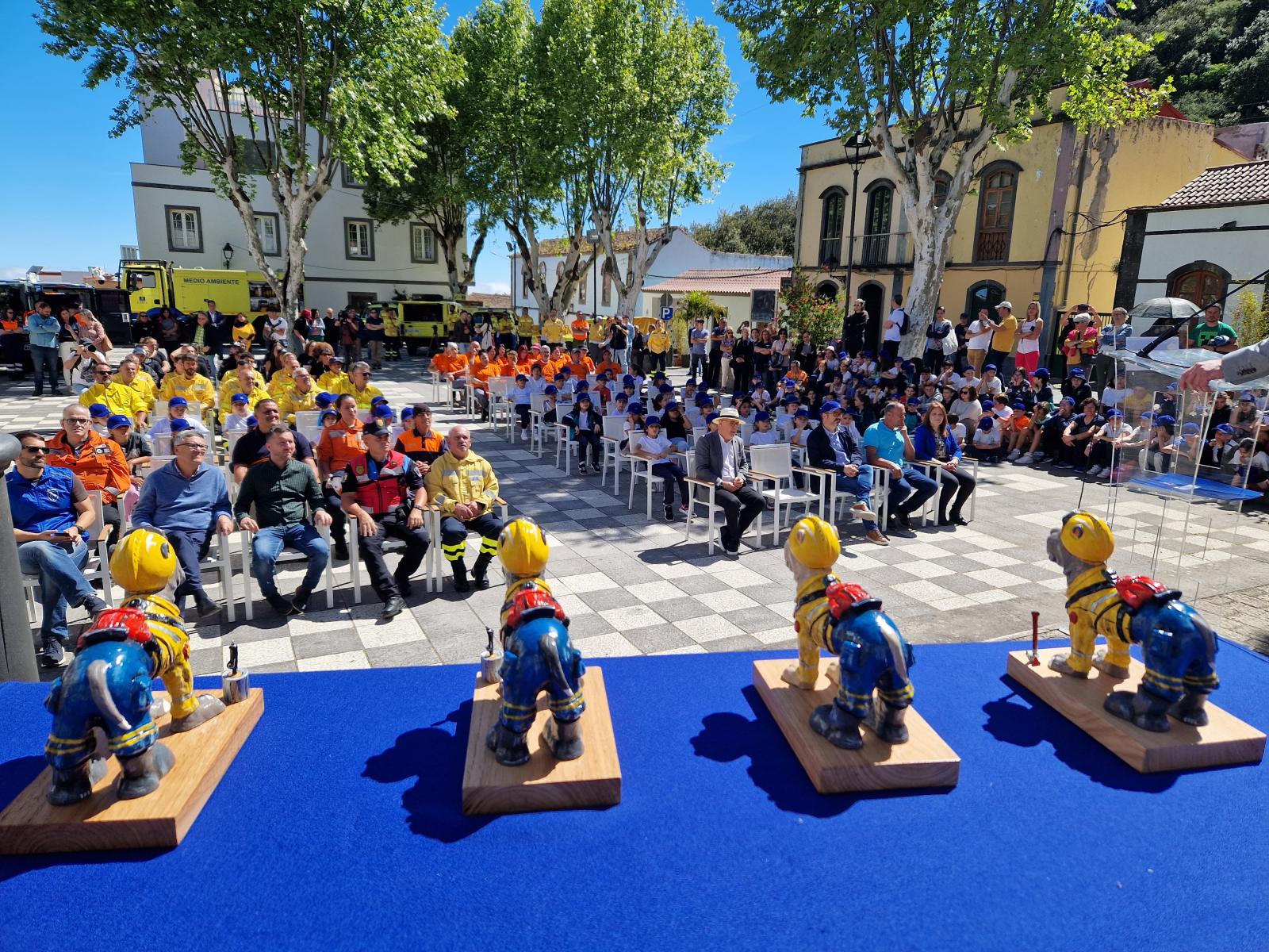 Tras la entrega de premios, en la que también se reconocieron a otros colectivos, se realizaron talleres didácticos para enseñar a los niños y niñas del colegio de Valleseco el funcionamiento y la utilidad de los drones, así como el trabajo de los bomberos forestales y las herramientas que utilizan.
